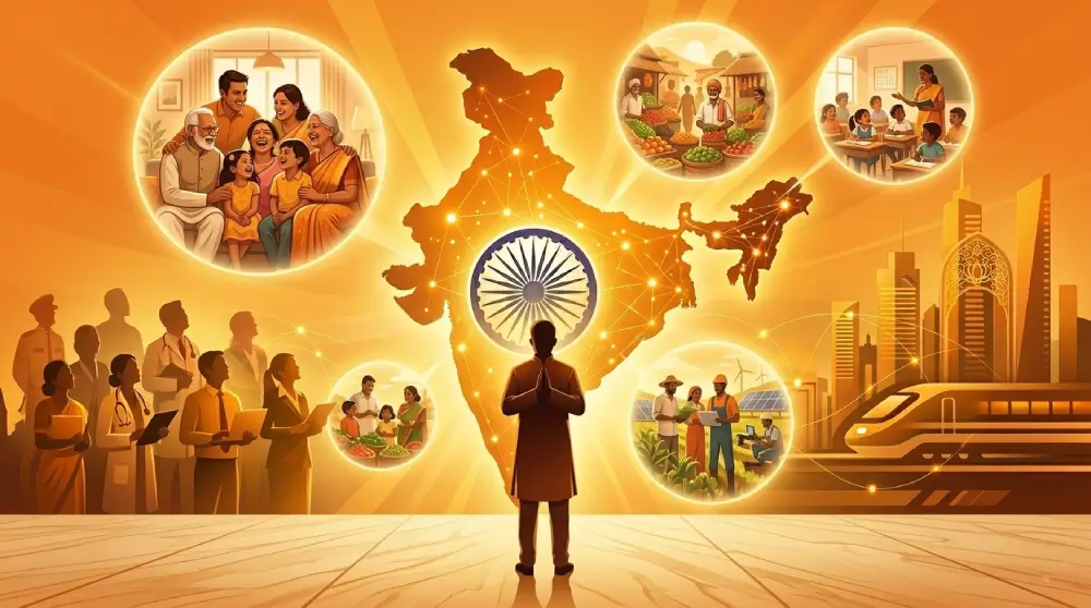“सबका साथ, सबका विकास, सबका विश्वास” या विचारातून समाजातील प्रत्येक घटकाला विकासाच्या मुख्य प्रवाहात आणण्याचा प्रयत्न झाला. आत्मनिर्भर भारताची संकल्पना, पायाभूत सुविधांचा वेगवान विकास, डिजिटल क्रांती आणि जनकल्याणकारी योजना — या सर्व उपक्रमांमागे राष्ट्रहित हाच मुख्य उद्देश राहिला.